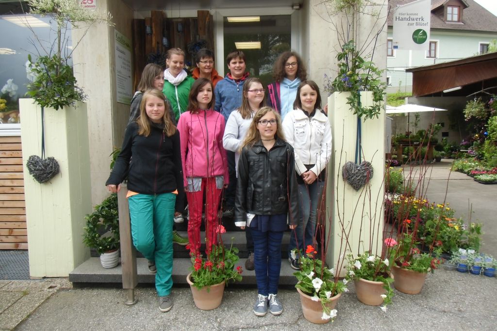 Nach allgemeinen Informationen über den Beruf der Floristin ging es bei der Firma Kreaflor zur praktischen Arbeit. Unter der Anleitung von Frau Gerlinde Krammer bepflanzten die Schüler 4 Keramiktöpfe mit Blumen und schmückten den Schuleingang damit.