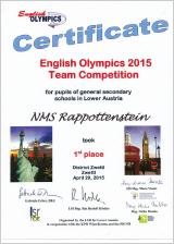 Die Freude war groß als diese SMS-Botschaft die Mitschüler und Mitschülerinnen aus der 4. Klasse erreichte: Bianca Fürst, Sigrid Trondl, Florian Fröschl und Jakob Hammerl hatten bei den English Olympics in Zwettl ihr Bestes gegeben und die NMS Rappottenstein würdig vertreten.
