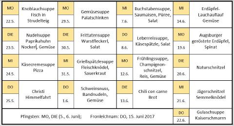 Menüplan für Mai/Juni 2017 Änderungen möglich!